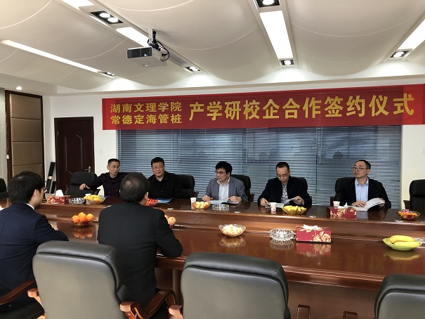 2020年3月,常德定海管樁有限公司與湖南文理學(xué)院簽訂產(chǎn)學(xué)研合作協(xié)議??偨?jīng)理陳吉果與學(xué)院領(lǐng)導(dǎo)現(xiàn)場簽約并授牌。